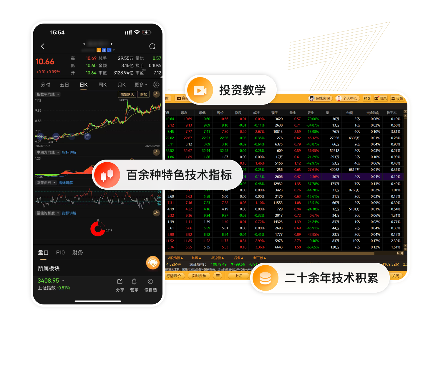 便捷發現優質股票 直觀識別高位風險 輔助判斷個股走勢 洞察捕捉資金信號 實時追蹤市場動態